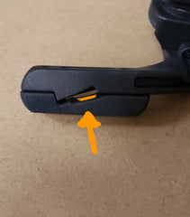 - Insert the screw from the top of the sliding mount to catch the brass in the front of the grip.