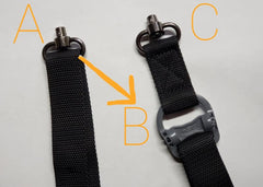 A: Check out the image - A to B. C to your stock. That's it! Super easy. You can add an attachment to make the unit a two point if you prefer.